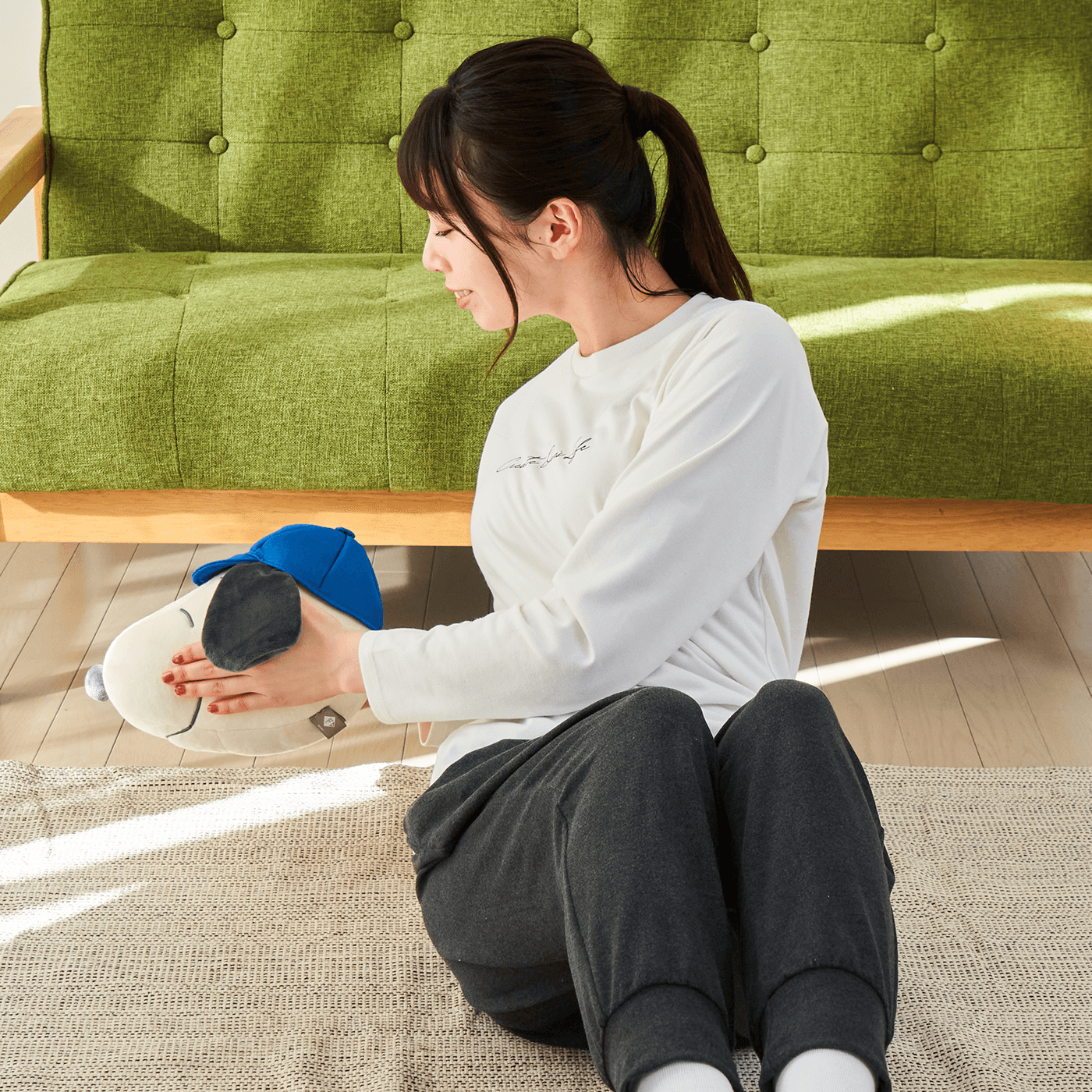 気持ちよすぎる肌ざわりと、可愛すぎるスヌーピーのデザインで、普段はぬいぐるみとしてなでなでリラックス。でも、ふとした時に気軽にトレーニングができて、気になる二の腕の引き締めや、固まった肩のストレッチに大活躍!